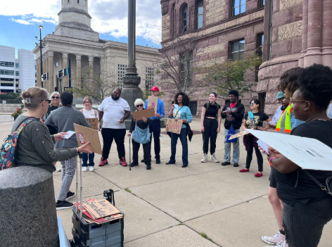 Speakers at the demonstration encouraged attendees to sign up for public comment before City Council to express the need for affordable housing in Cincinnati. Activists passed out flyers their demands, including a prohibition on “displacement of residents by developers receiving incentives,” the “mandatory inclusion” of units affordable to households earning 30% AMI and below in “all projects,” and other guidelines related to stormwater management, energy efficiency, and the empowerment of Community Councils to approve or deny “large new developments.”